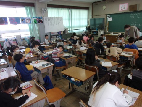 3組は生活で、参観日の発表のふりかえりをワークシートに書いていきました。うまくできたところ、できなかったところを次にいかすことが大切ですね。
