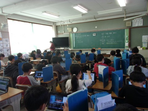 1組は社会で、テストをしていました。最後まで分をよく見て取り組んでいました。終わった人から先生の指示に従って静かに課題をしていました。