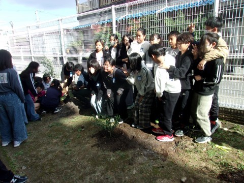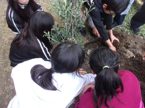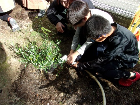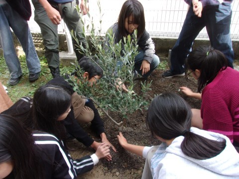 オリーブの植樹のために出前授業に来てくださいました。オリーブのことについて教えていただいた後、実際に植樹を行いました。教えてもらったことをいかして、卒業までしっかりと育てていきましょう。