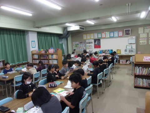 1組は図書室で読書をしていました。自分の興味関心のある本を取って真剣に読んでいました。