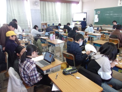 2組は国語で、卒業文集の作成や『今、私は、ぼくは』の発表原稿やプレゼンの作成などに取り組んでいました。