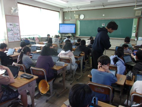 1組は国語で、『風船でうちゅうへ』の学習をしていました。この文章を読んばことがない人にも伝わるように要約をつくっていました。