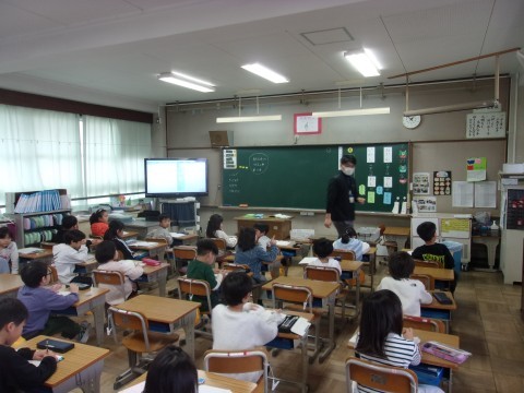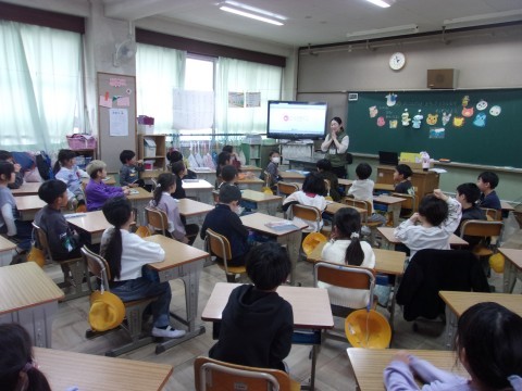1組は国語で,『ことばあそびをつくろう』の学習をしていました。「いわしのなかにはわしがいる」「みなんのなかにはかんがある」など,ことばの中の言葉に注目しながら言葉遊びをしていきました。
