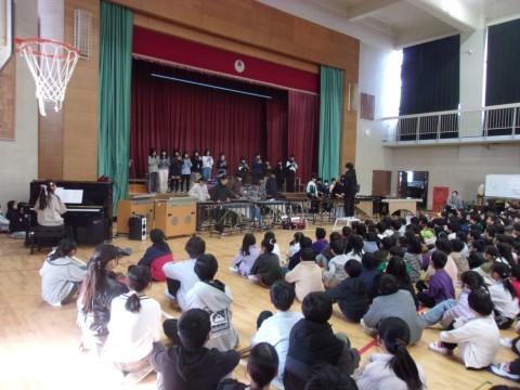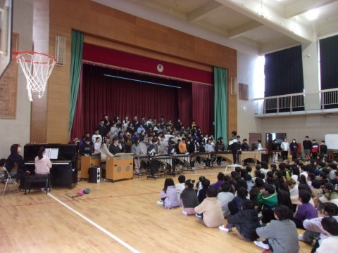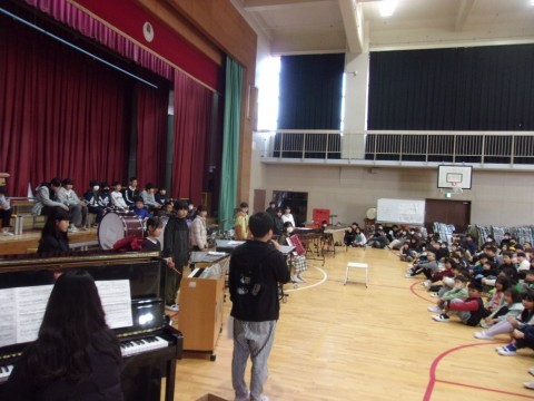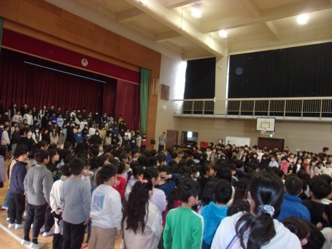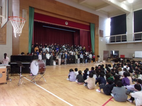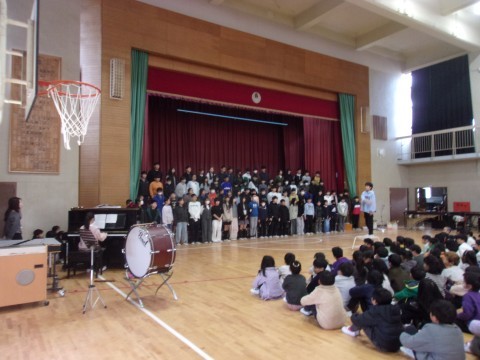 体育館に全校児童が集まり,6年生によるお別れコンサートがありました。6年生各クラスからの学級合奏,全クラスでの学年合奏,そして学年合唱を聴かせてくれました。1~5年生もとてもよい雰囲気で音楽にひたってコンサートの素晴らしい時間をともに過ごすことができました。最後は5年生のリコーダー奏と拍手の中,6年生は退場していきました。