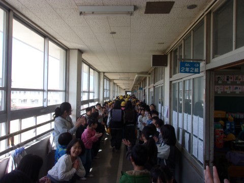 6年生が全校児童に見送られて,卒業前最後の下校に向かいました。全校児童によるお別れアーチをとおった6年生の表情は,誇らしくもあり淋しそうでもありました。