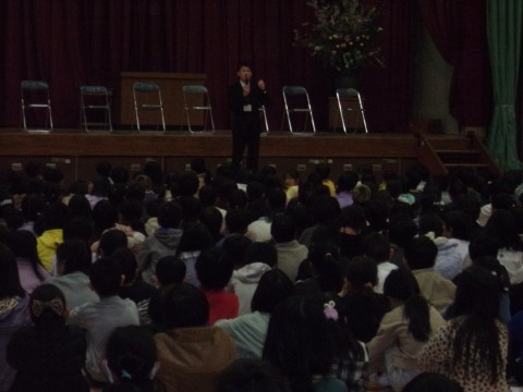 校歌斉唱,校長先生のお話,生徒指導の先生のお話がありました。本年度をふりかえり,また次年度へとつなげていってほしいです。