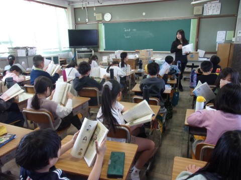 教室に戻ったら,先生やこどもたちの自己紹介などがあったり,新しい教科書も配られました。