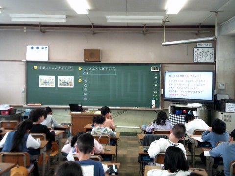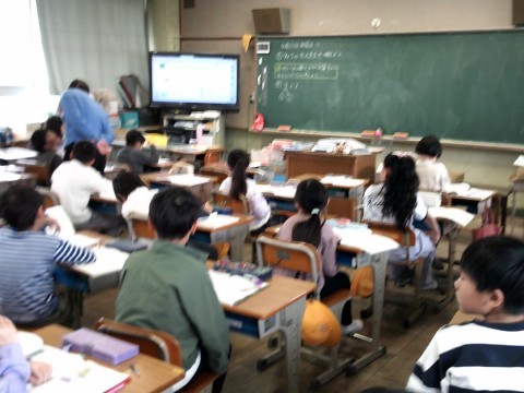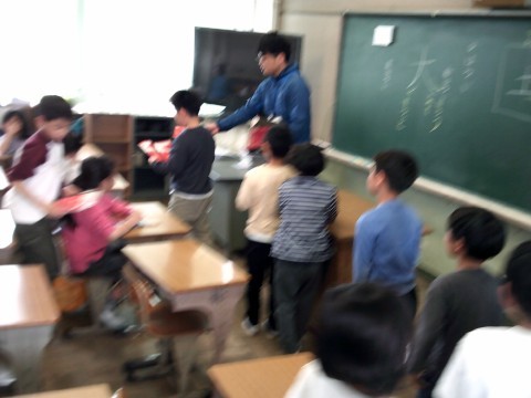 1組はノートを配っていましたが,先生が「手伝ってくれる人?」と聞くと,たくさんお手伝いために出てきてくれました♪