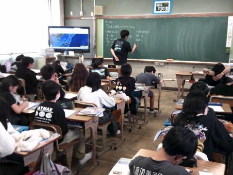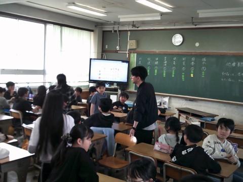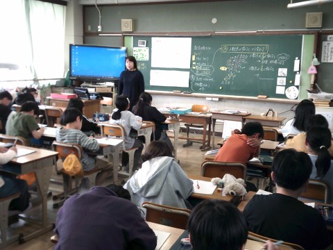 3組は社会の学習です。日本の国土について世界の中で日本をとらえてそこから感じることを交流していました。