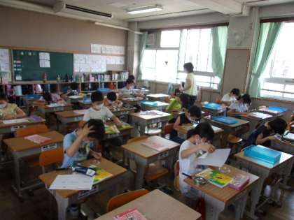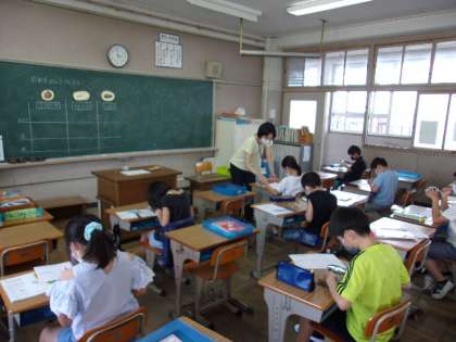 虫メガネを使って、ほうせんかとマリーゴールドとヒマワリの種の違いを観察していました。