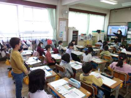 2年生が算数の時間に、九九の勉強をしていました。