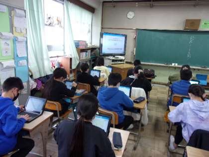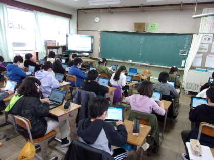 自分がしている跳び箱運動の動画を見て、自分の良い所や直した方がいいところをまとめていました。