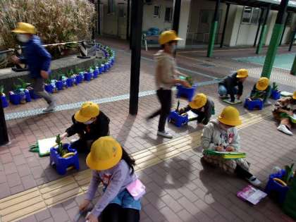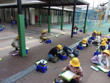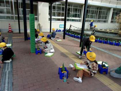 1年生がチューリップの観察をしていました。