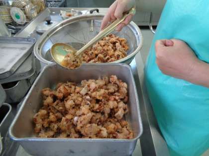 今日は,初めての「たこのからあげ」でした。中心温度までしっかり温度を上げようと思うと,少したこが硬くなってしまいました。