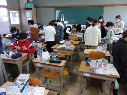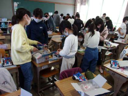 電気と磁石の関係を勉強していましたが、今日はモーターを作って「車」を動かしていました。