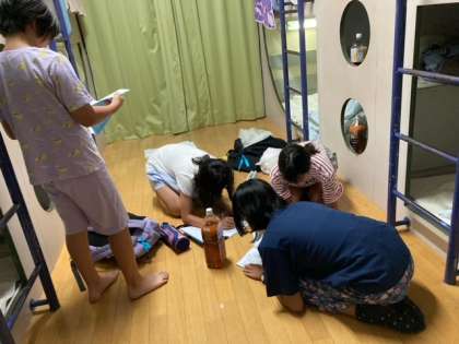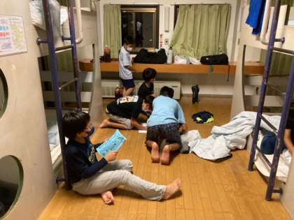 現在消灯時間ですが、すでに9時くらいから電気を消している班もありました。