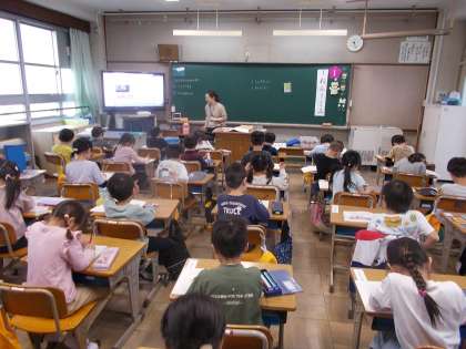 お道具箱の使い方などを学んで、終わった後は自由帳に絵を描くなどして過ごしていました。先生の話をよく聞いて、てきぱきと行動できています。