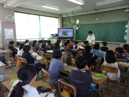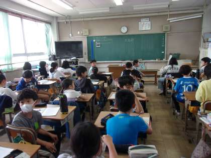 1組は理科で、3年生に学習した植物の「根・組・葉・実」等の内容を覚えているかを確認していました。先生が出す問題にしっかりと答えることができていました。