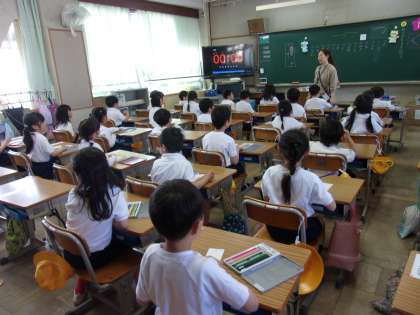 今日は発育測定がありました。1組と2組は終わった児童からネームカードのお絵かきや読書をしていました。3組は、保健室に向かうところで、静かに移動することができていました。