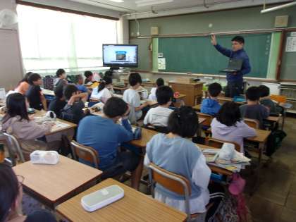 1組は理科で、5年の理科の導入をしていました。表紙にある写真からどんな学習をしていくのかを探っていきました。