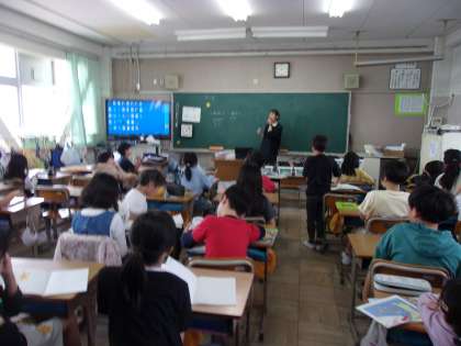 1組は国語で、新出漢字の学習をしていました。出来た人から先生に見せていました。そのあと「なり切って書こう」に取り組んでいました。