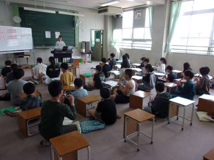 2組は国語で、銀色の裏地を読んで印象に残ったことなどをノートに書きました。黙々と取り組んでいました。