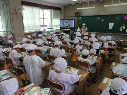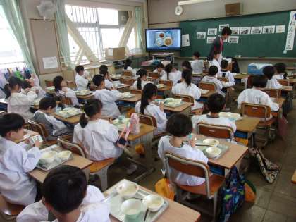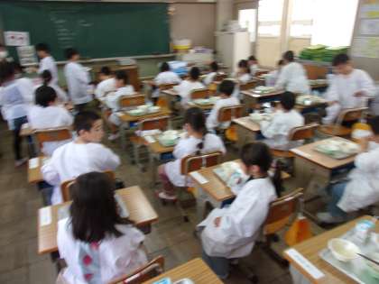 給食が始まって2日目です。昨日はパンでしたが、今日はご飯です。飲み終わった牛乳パックをつぶすのがまだ難しいようです。これから、徐々に慣れてできるようになりますよ。