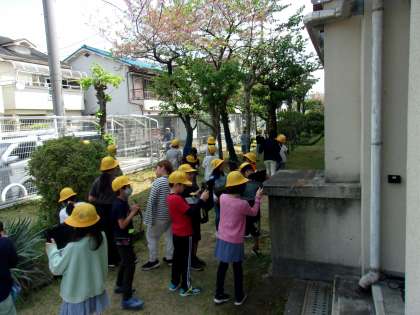 2組は理科で、タブレットを持って春の植物の観察にいきました。たくさんの春の植物をみつけて写真を撮っていました。