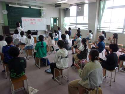 3組は音楽で、サンバのリズムに合わせて手拍子をしていました。初めてなのにも関わらずうまくできたので音楽の先生にほめられていました。