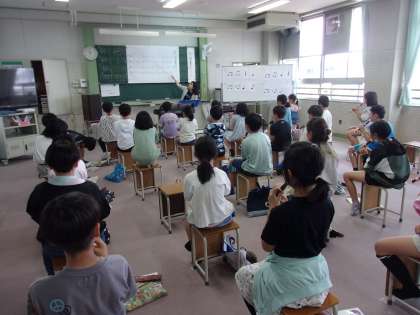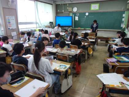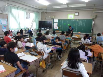2組は国語で、『思いやりのデザイン』の学習をしていました。子どもたちからの意見がたくさん出たので45分では収まり切れず、次の時間も引き続き取り組んでいました。