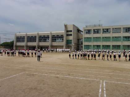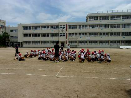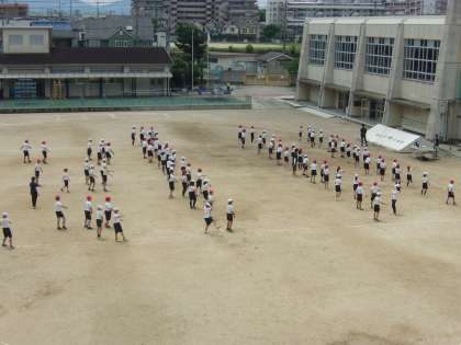 運動場で団体競技の並び方等の確認をした後、団体演技の練習に取り組みました。楽しそうに踊っているのが印象的です。