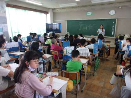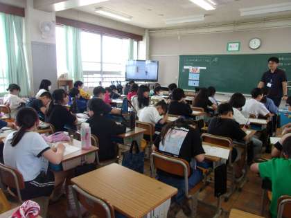 1組は外国語で、ふりかえりシートに記入していました。これまでの学習をふりかえってしっかりと記入していきました。