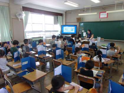 2組は算数で、7は5と□など、「7」について学習していました。この後は「8」の学習に取り組みました。