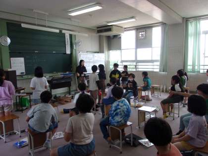 1組は音楽で、『いろんな木の実』のリズム合奏をしていました。考えた合奏を順番に発表していきました。
