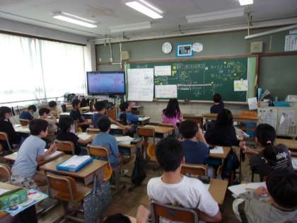 2組は算数で、整数×小数の求め方を考えました。80×0.3をどのように考えて答えを出すのか、意見を出し合いました。