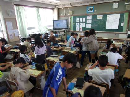 1組は国語で、『見立てる』の学習をしていました。文章の構造を把握しながら、あやとり例から見立てるとはどういうことかを読み取っていきました。
