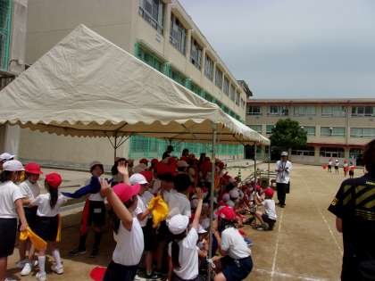 4年生とお互いの団体演技を見合いました。自分たちの演技を見てもらった後、4年生の演技を見せてもらいました。たくさんの感想を発表することができて、お互いに高め合うことができました。