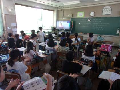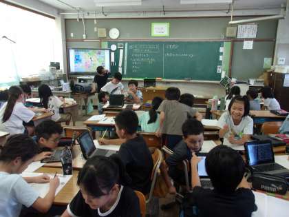 総合的な学習の時間で、学年でそれぞれのグループに分かれて取り組んでいました。明日のキャップハンディ体験に向けて質問を考えたり、防災マップに載せることを調べたり、防災グッズであったらいいと思うものを話し合ったり、手話歌を練習したりしていました。