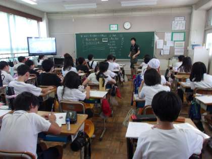 2組は算数で、拡大図、縮図の学習に取り組んでいました。正三角形、正方形、正五角形…などは、どんな大きさでも必ず拡大図・縮図の関係になっていることを確認しました。