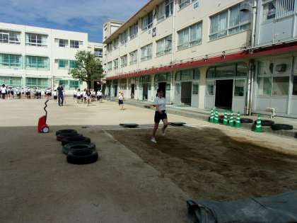 朝のまだ涼しい時間帯に短時間集中して連合運動会の練習に取り組んでいます。最初に全員で堺っ子体操をしてから、各パートに分かれて練習しました。本番に向けて試行錯誤しながら取り組むことで、自分たちのベストが出るように取り組んでほしいと思います。