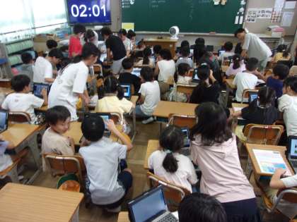 1組はパソコンの使い方を6年1組のみんなに教えてもらっていました。とてもわかりやすく教えてもらって1年生はとても嬉しそうでした。