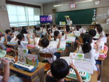 1組は音楽で、「こんなこと、こんなこと、できますか〜?」という先生の歌に合わせて提示されたカードに合うリズムで拍手をしていました。いいリズム感で楽しそうでした。