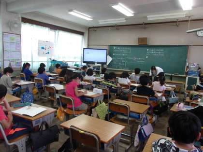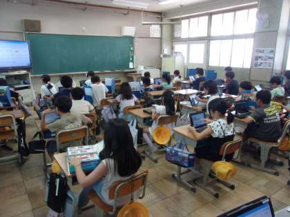 3組はテストを行っていました。その後は各自でタブレットを使って堺のことについて調べていました。さまざまなジャンルに分かれて調べていました。