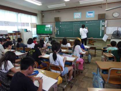 2組は算数で、等号や不等号について学習していました。700万>400万、5000=2000+3000などを確認していました。
