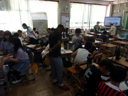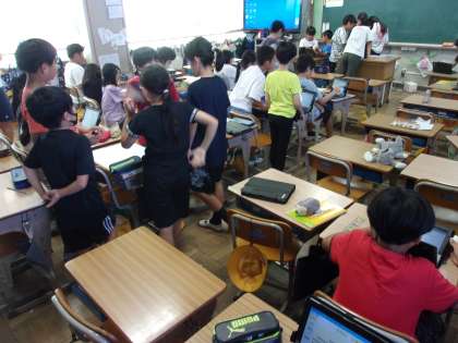 1組は学活で、会社活動を行っていました。さまざまな取組みをしていましたが、中には大人でもなかなかわかりにくいクイズを作っているグループもあり当日が楽しみな様子です。