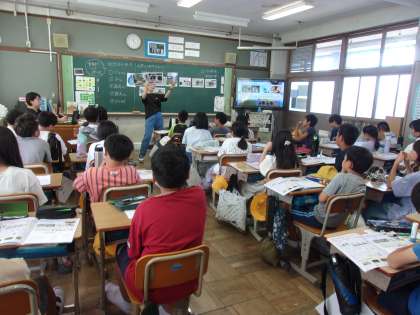 3組は外国語で、『できることをヒントにした日置荘先生クイズ』作っていました。3ヒントなので3つの英語の紹介文を作りました。どんなクイズか楽しみですね。