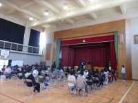 体育館に全校児童が集まり,6年生によるお別れコンサートがありました。6年生各クラ...
