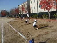 体育「走り幅跳び」の時間の様子です。跳ぶ際の足の曲げ方に着目し、子どもたち同士で...