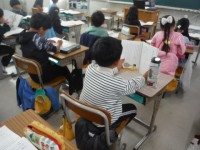 国語の授業の様子です。3人組に分かれて音読の練習をしていました。読む姿勢もそれを...
