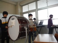 音楽の授業の様子です。卒業に向けて全体で合奏の練習をしていました。指揮者を見て、...
